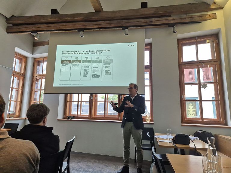 Besonders wertvoll waren die Präsentationstermine im Rahmen einer Roadshow mit Raum für Präsentation und Dialog mit den Stakeholdern – vorerst in Bludenz, im Klostertal und im Biosphärenpark Großes Walsertal. Dabei konnten wir ganz konkrete Zahlen auf den Punkt bringen. Sehr stimmig war u.a. die Location im Turnsaal in Klösterle ("Tourismus bewegt viel").