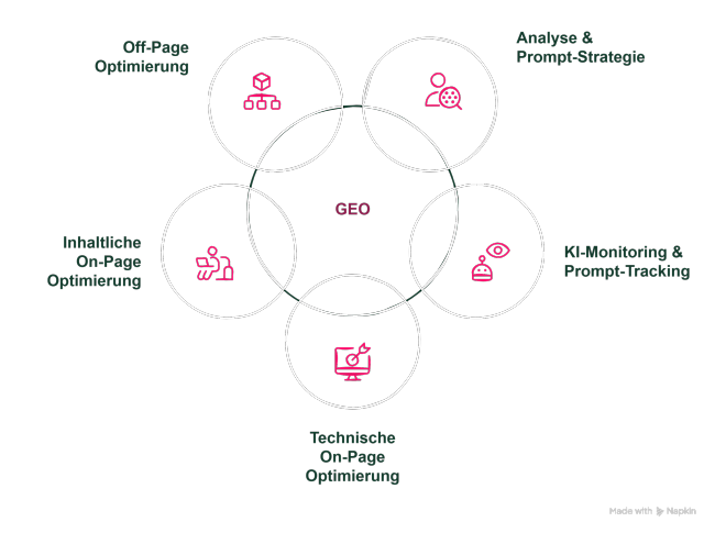 Da Sprachmodelle nicht direkt beeinflussbar sind, braucht es eine gezielte GEO-Strategie, die dort ansetzt, wo KI-Systeme Informationen beziehen.